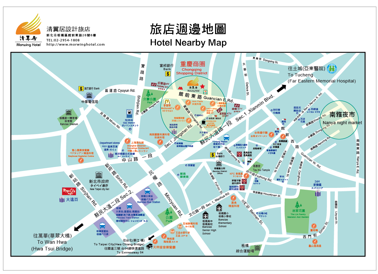 Take the Formosa Freeway(National Highway No.3) and go toward Expressway No. 65, take Banciao Interchange NO.2, and go along Sec.1,Xianmin Blvd and turn right at Guancian W.Rd and go straight after through one traffic light,located in the right-hand side of 7-11 upstairs.